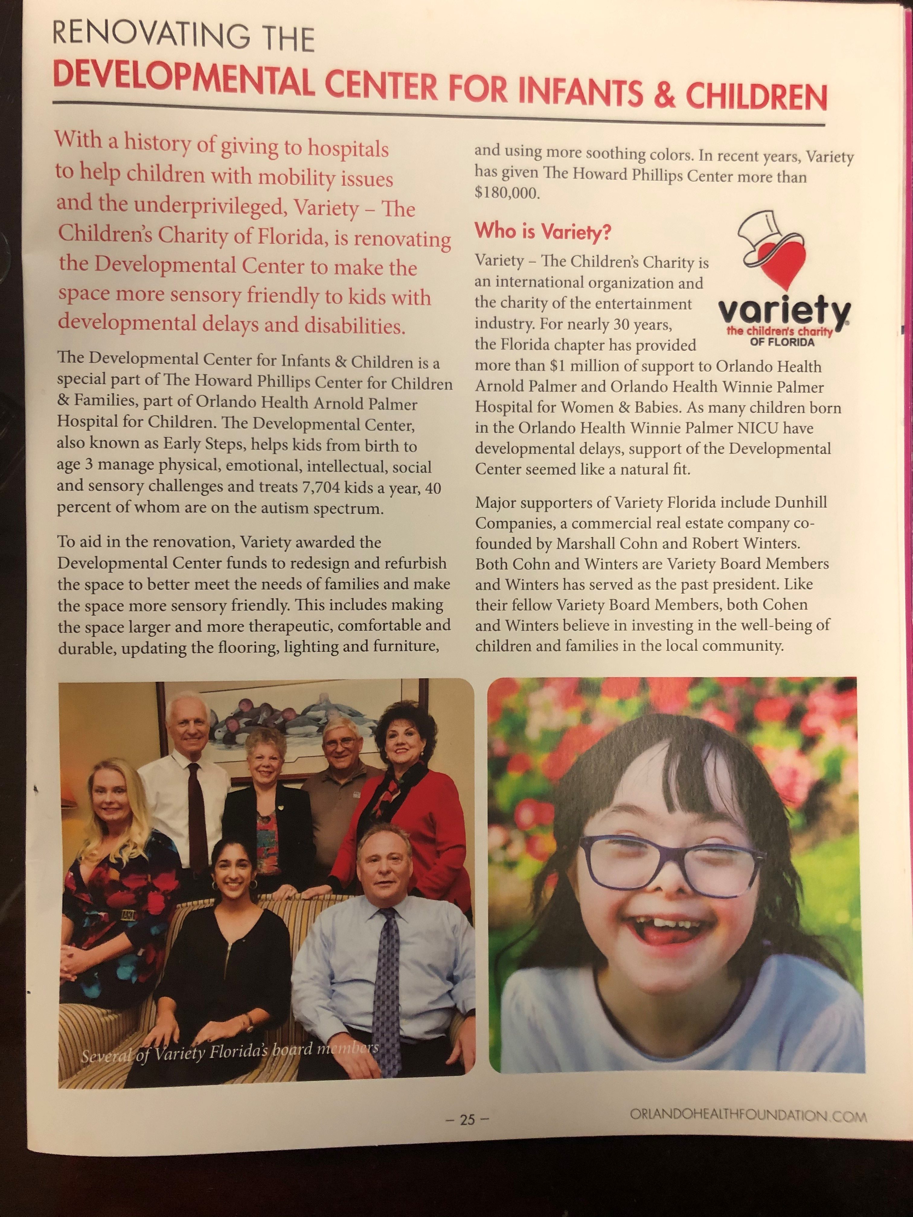 December 13, 2019Robert Winters & Marshall Cohn, President & Vice Presidents of The Dunhill Companies and also proud Board Members of Variety – the Children’s Charity of Florida were featured in the Orlando Health Foundation’s 2019 Gratitude Report this year! The article named “Renovating the Developmental Center for Infants & Children” can be found on page 25. Dunhill is so honored to be helping out and changing lives of the children and families of our community. All the proceeds from our 2019 Wine Tasting Event were donated to the Orlando Health Arnold Palmer Hospital for Children.