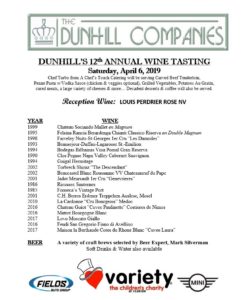 Dunhill’s 12th annual Wine Tasting Event * Sat. 4/6/19
