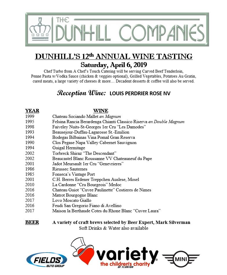 Dunhill's 12th annual Wine Tasting Event * Sat. 4/6/19 - The Dunhill Companies